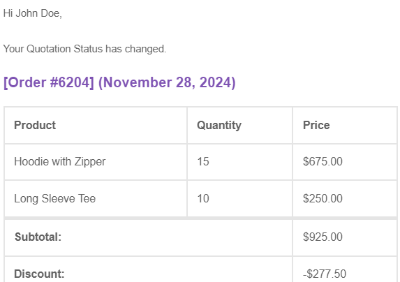 Notify customers instantly about WooCommerce quotation requests via email.