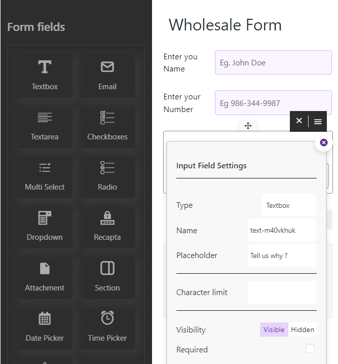 Create custom fields to gather any relevant information from wholesale applicants